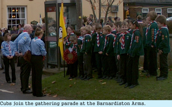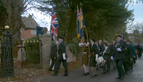 At half past ten on Sunday morning members of Kedington's branches of the Royal British Legion, Sea Scouts, Cubs, Beavers, Brownies and Guides Started from outside The Barnardiston Arms in slow procession. The Parade was lead through the village by Brian Tyrrel to the graveyard Kedington Church where it became part of a gathering said by many to be the largest in recent years.The Colours of various village groups were lowered and the village joined the nation in two minuets silence. This ended with the last post after which wreaths of poppies were laid on the memorial cross. The service then moved inside the church for it's conclusion.